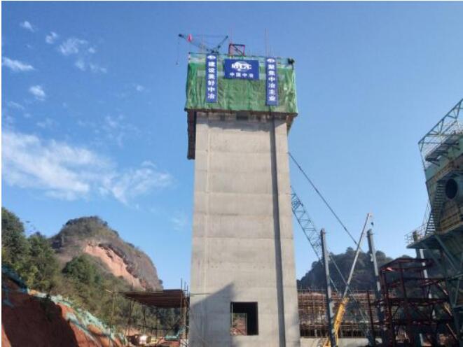 8、煙囪倒模施工,累計澆筑14模,高25.2米。