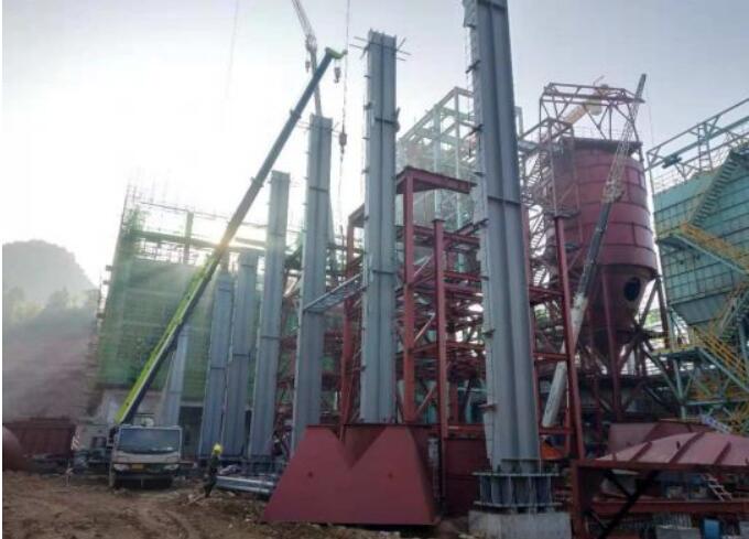 2、煙氣處理:收塵器、反應(yīng)塔公共平臺安裝;消石灰、灰?guī)熘麂摌?gòu)、樓梯安裝,灰斗、倉體安裝;