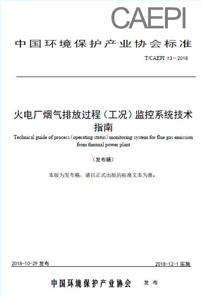 關于發(fā)布《火電廠煙氣排放過程(工況)監(jiān)控系統技術指南》(T/CAEPI 13—2018)的公告