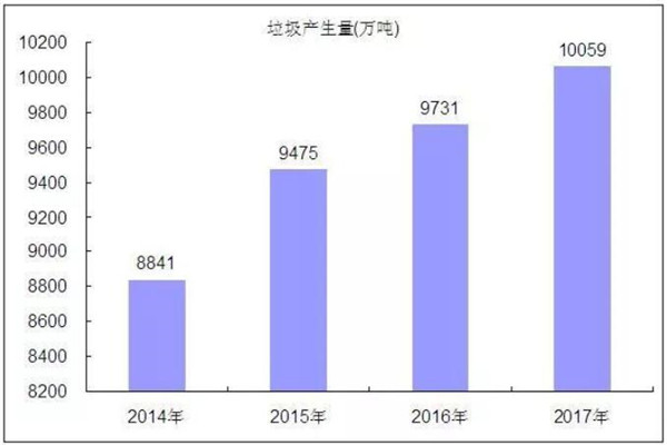 圖表:2014-2017年全國(guó)餐廚垃圾產(chǎn)生量情況