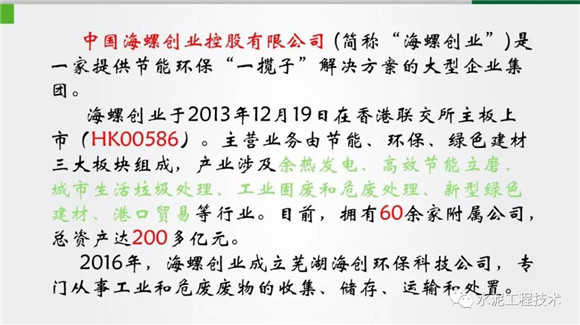 以下為海螺創(chuàng)業(yè)控股有限公司總經(jīng)理助理方磊在中國(guó)硅酸鹽學(xué)會(huì)工程技術(shù)分會(huì)、建筑材料工業(yè)技術(shù)情報(bào)研究所于10月24-27日在蘇州舉辦的“第三屆水泥窯協(xié)同處置廢棄物技術(shù)交流大會(huì)”上作的“海螺創(chuàng)業(yè)水泥窯協(xié)同處置危廢簡(jiǎn)介及經(jīng)驗(yàn)分享”報(bào)告。