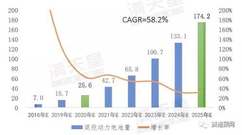 圖1 2018-2025年動力電池退役量預(yù)測(GWh)