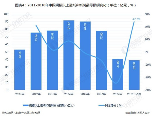 2018年1-6月的虧損額達(dá)到39億元,較上年同期增長(zhǎng)47.73%,已接近2017年全面水平,我國(guó)造紙企業(yè)正面臨著嚴(yán)峻的考驗(yàn)。