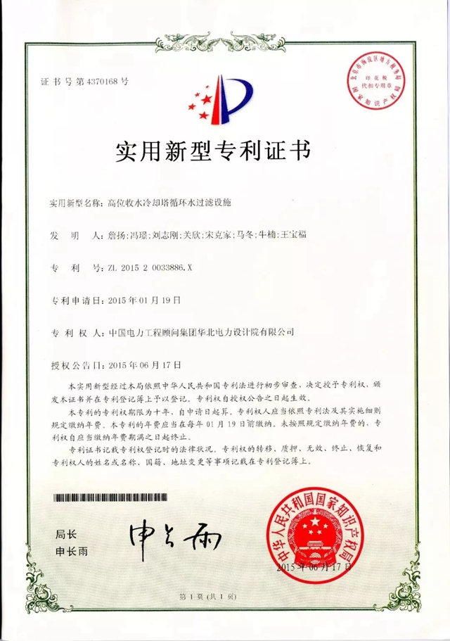專家組在評審意見中高度評價了華北院取得的成果,一致認為:“該項目技術(shù)成果達到國內(nèi)領(lǐng)先水平,高位收水冷卻塔循環(huán)水過濾設(shè)施達到國際先進水平”“建議盡快推廣應用”。