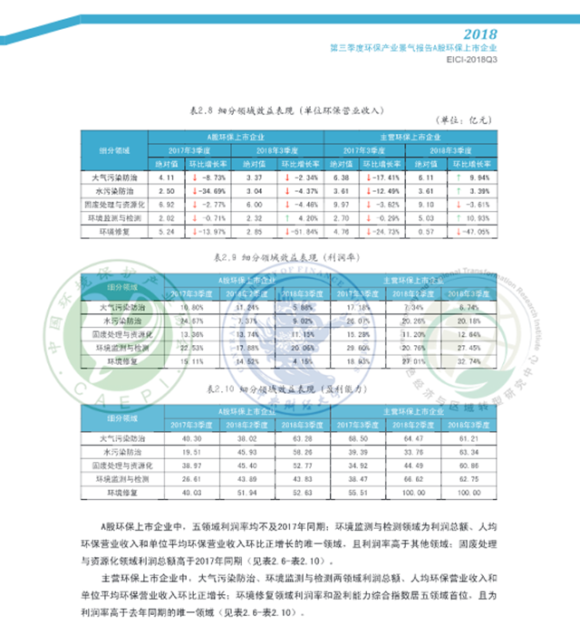 原標(biāo)題:2018年第三季度環(huán)保產(chǎn)業(yè)景氣報告:A股環(huán)保上市企業(yè)