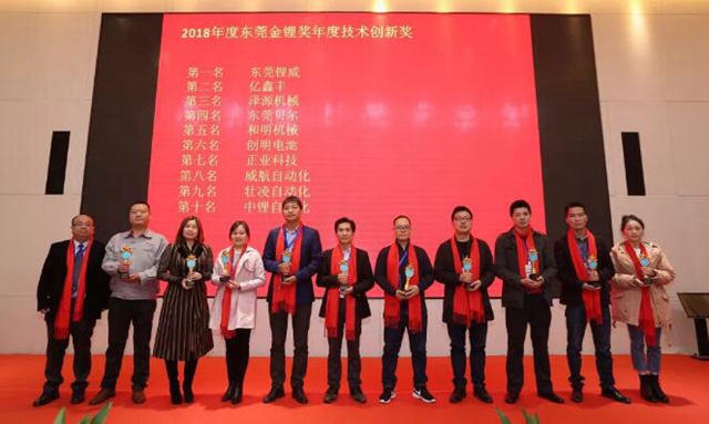 2018年度東莞鋰電業(yè)年度技術(shù)創(chuàng)新獎(jiǎng)獲獎(jiǎng)