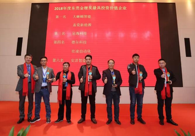 2018(第一屆)東莞市鋰電行業(yè)協(xié)會(huì)金鋰獎(jiǎng)年度評(píng)選活動(dòng)選出了“2018年度東莞鋰電業(yè)最具成長(zhǎng)性企業(yè)”、“2018年度東莞鋰電業(yè)最具投資價(jià)值企業(yè)”、“2018年度東莞鋰電業(yè)年度技術(shù)創(chuàng)新獎(jiǎng)”、“2018年度東莞鋰電業(yè)十大優(yōu)秀品牌”等獎(jiǎng)項(xiàng)。