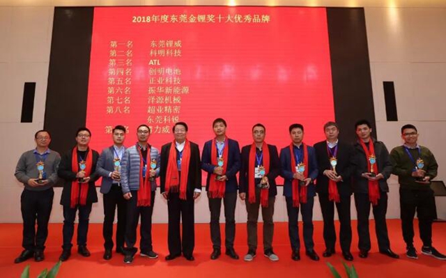 2018年度東莞鋰電業(yè)十大優(yōu)秀品牌獲獎(jiǎng)