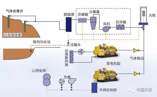 填埋場(chǎng)發(fā)電流程示意圖