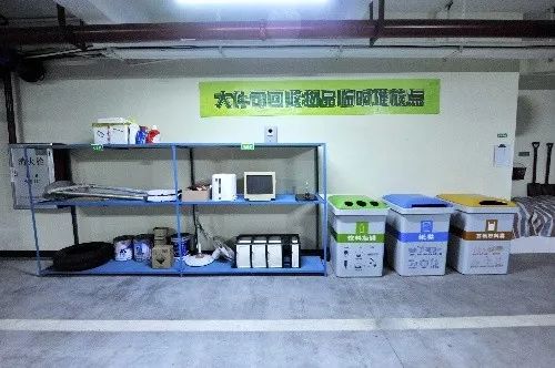 廣州一棟住宅樓地下車庫里的大件可回收物品臨時堆放點(diǎn)