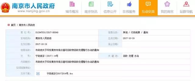 第一條 為鼓勵居民、企業(yè)參與低價(jià)值可回收物的回收利用,促進(jìn)生活垃圾減量化和資源化處理,依據(jù)《南京市生活垃圾分類管理辦法》等有關(guān)法律、法規(guī)和規(guī)章的規(guī)定,結(jié)合本市實(shí)際,制定本辦法。