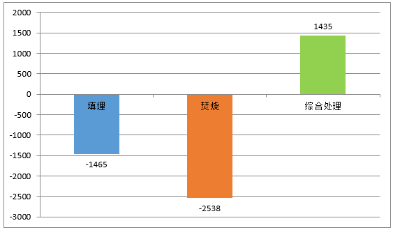 餐廚垃圾不同處置方法經(jīng)濟(jì)效益(萬(wàn)元)