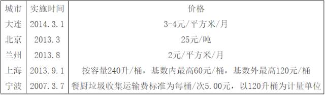 我國(guó)部分城市餐廚垃圾處理收費(fèi)標(biāo)準(zhǔn)