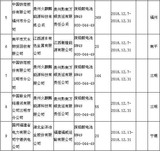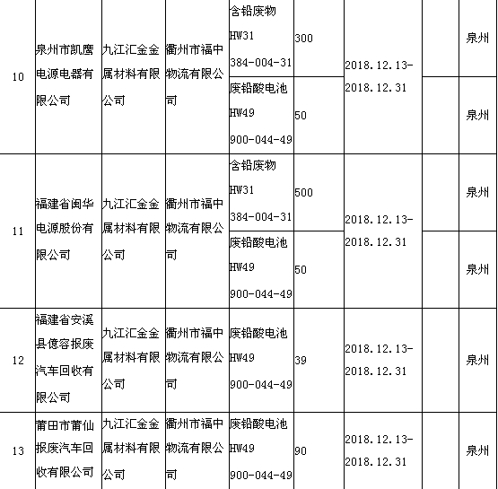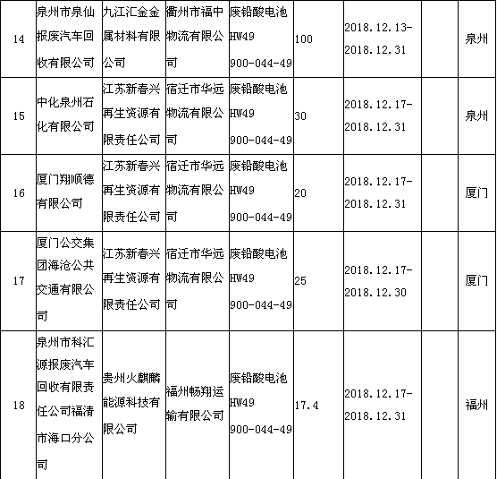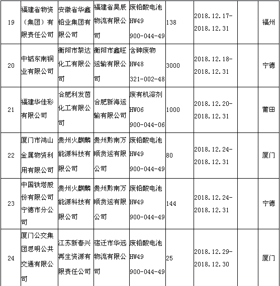 日前福建省環(huán)境保護廳發(fā)布了《2018年12月福建省危險廢物跨省轉移情況公告》,共有24項,具體內容如下: