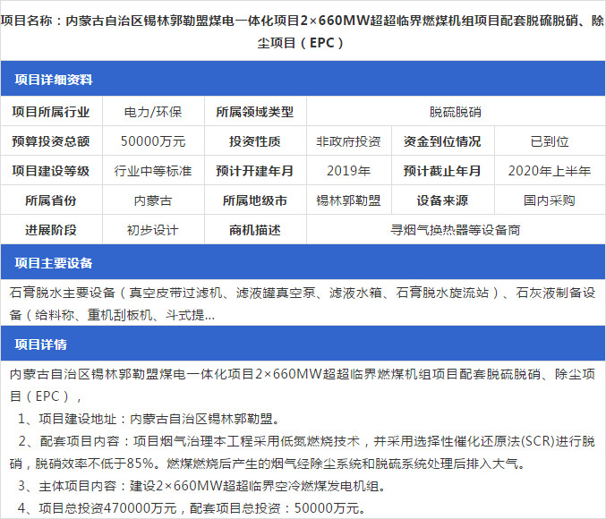 2019年1月份最新的全國脫硫脫硝工程項目匯總情況,包括SCR脫硝項目、SNCR脫硝項目等,詳情如下:
