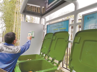 每天清晨,清運(yùn)公司的工作人員在把易腐垃圾倒入清運(yùn)車之前,都需要完成一項(xiàng)特殊的“打卡”工作——對(duì)集置點(diǎn)的每一桶易腐垃圾進(jìn)行稱重、拍照后,工作人員會(huì)打開手機(jī)APP(生活垃圾智能監(jiān)管系統(tǒng)),掃描設(shè)置在集置點(diǎn)上的二維碼,將每個(gè)易腐垃圾桶的重量和分類情況上傳至后臺(tái),實(shí)現(xiàn)數(shù)據(jù)的同步更新。