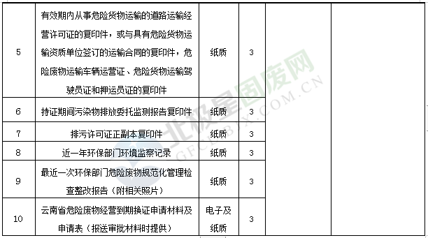 二、云南省危險(xiǎn)廢物經(jīng)營(yíng)許可證到期換證申請(qǐng)材料清單