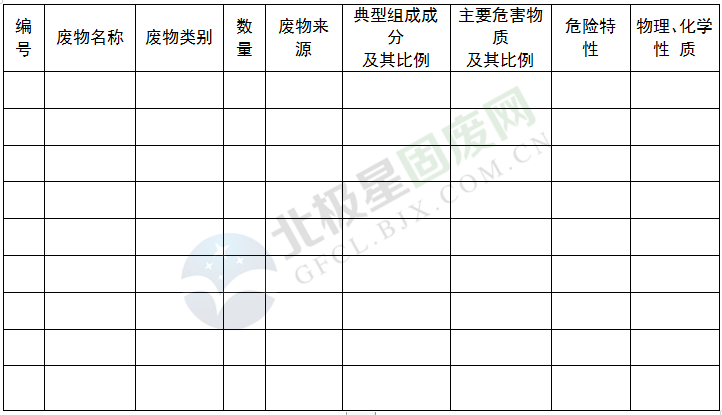 附:核準(zhǔn)經(jīng)營(yíng)的危險(xiǎn)廢物類別、經(jīng)營(yíng)規(guī)模和處置方式明細(xì)表、污染防治措施、環(huán)境監(jiān)測(cè)制度、新產(chǎn)生的危險(xiǎn)廢物的管理計(jì)劃等。