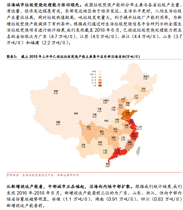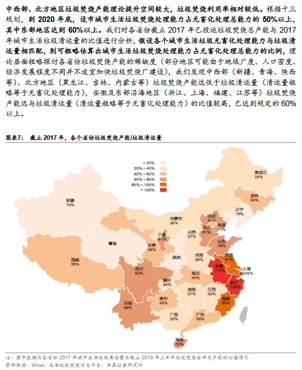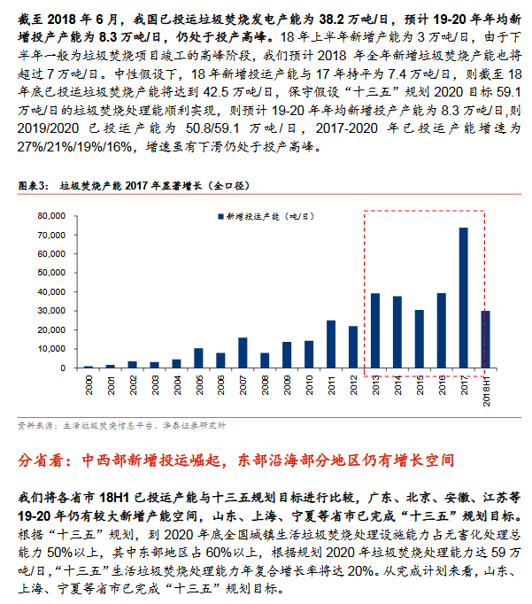 產(chǎn)能加速釋放:17年城市新增4.2萬噸/日(2012-2016年均新增3.2萬噸/日);17縣城投運(yùn)速度提速,我們估計17新增3.2萬噸/日(十二五年均新增0.4萬噸/日)。按照選取典型上市公司(18年已投運(yùn)產(chǎn)能市占率29%)投產(chǎn)規(guī)劃,18-20年累計投運(yùn)增速24%/24%/33% vs 按照十三五規(guī)劃測算18-20年累計投運(yùn)產(chǎn)能增速23%/19%/16%,上市公司投產(chǎn)增速高于行業(yè)增速,表明1)行業(yè)增速可能超預(yù)期或 ;2)上市公司已投運(yùn)市占率將提升。分區(qū)域:山東/上海/寧夏等省市提前完成十三五目標(biāo),廣東/北京/安徽/江蘇等19-20年仍具較大空間,中西部新增投運(yùn)崛起,東部部分地區(qū)仍有空間。