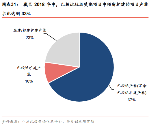 “鄰避效應(yīng)”的有效應(yīng)對有效緩解了垃圾發(fā)電產(chǎn)能擴(kuò)張的阻礙因素。由于環(huán)境壓力的日益加重,推動垃圾發(fā)電行業(yè)發(fā)展已成為業(yè)內(nèi)的共識。但由于部分民眾對垃圾焚燒發(fā)電的認(rèn)識不足,抵制并阻撓所在地區(qū)焚燒發(fā)電廠的建設(shè)運(yùn)營,“鄰避效應(yīng)”加大了垃圾焚燒發(fā)電廠的選址難度,制約了行業(yè)的快速發(fā)展。但在當(dāng)前“鄰避效應(yīng)”能夠更有效應(yīng)對:1)行業(yè)發(fā)展更為成熟、環(huán)保督查趨嚴(yán),公信力提升機(jī)向群眾宣傳和信息公開透明制度更為完善;2)擴(kuò)建比例較高,在原址附近擴(kuò)建鄰避效應(yīng)會有效減弱。截至2018年中,已投運(yùn)的所有垃圾焚燒項(xiàng)目中,預(yù)留擴(kuò)建的項(xiàng)目產(chǎn)能占比達(dá)到33%,其中已投運(yùn)的擴(kuò)建項(xiàng)目產(chǎn)能占比為10%,尚處于在建/擬建的項(xiàng)目擴(kuò)建產(chǎn)能占比為23%。一方面,在垃圾焚燒處理能力不足以滿足實(shí)際需求的情況下,很多項(xiàng)目選擇在現(xiàn)有焚燒處理廠的基礎(chǔ)上進(jìn)行擴(kuò)建;另一方面,多數(shù)項(xiàng)目在最初規(guī)劃選址時就會在一期項(xiàng)目的焚燒處理廠附近預(yù)留出二期項(xiàng)目甚至三期項(xiàng)目的場地。而已有廠區(qū)周邊的居民對于這些擴(kuò)建項(xiàng)目的接受度相對更高,鄰避效應(yīng)的作用也會因此得到較大緩解。