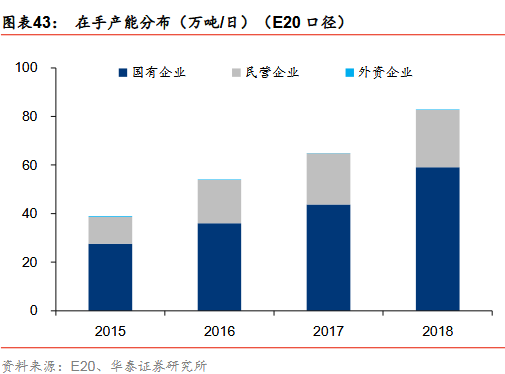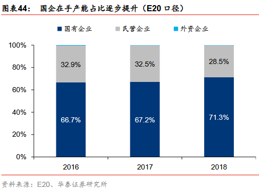 垃圾焚燒行業(yè)的參與者以國企和民企為主,國企在手產(chǎn)能市占率提升明顯,由16年的66.7%提升至18年的71.3%。從在手項(xiàng)目量(E20口徑)的角度看,2018年國企市占率大約71.3%,民企市占率大約28.5%,外企市占率大約0.2%。且從變化趨勢上看,國企在手產(chǎn)能市占率提升明顯,由16年的66.7%提升至18年的71.3%,主要與國企的資金優(yōu)勢、拿單優(yōu)勢相關(guān)聯(lián)。