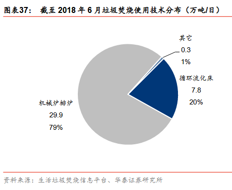 使用機(jī)械爐排爐技術(shù)的垃圾焚燒產(chǎn)能自2011年來顯著提升,截至2018年6月,已投運(yùn)垃圾焚燒產(chǎn)能中使用機(jī)械爐排爐技術(shù)的產(chǎn)能達(dá)29.9萬噸,占比達(dá)到79%。