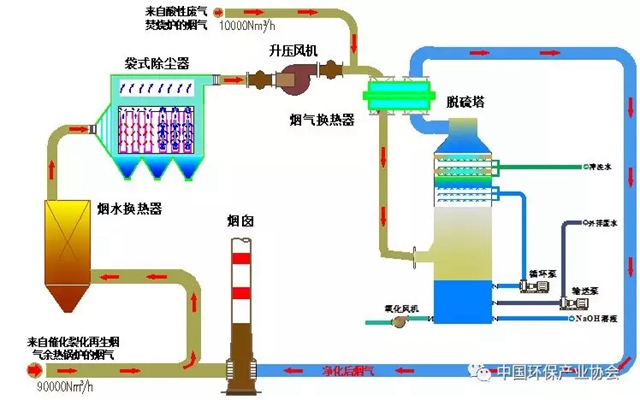 工程規(guī)模:煙氣量10萬m3/h(裂化再生煙氣90000m3/h+酸性廢氣焚燒爐煙氣10000m3/h)。