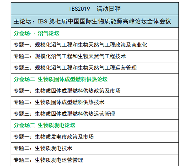 IBS2019將在兩天的會(huì)議中,開展生物質(zhì)沼氣論壇、生物質(zhì)發(fā)電、生物質(zhì)固體成型燃料和供熱三大專場(chǎng)。從“沼氣工程和生物天然氣工程政策及商業(yè)化(及沼氣設(shè)備),沼氣工程和生物天然氣工程技術(shù)及工程運(yùn)營(yíng)管理”到“生物質(zhì)原料收儲(chǔ)運(yùn)技術(shù)與裝備、生物質(zhì)發(fā)電市政策及市場(chǎng)、燃煤生物質(zhì)耦合發(fā)電技術(shù)及發(fā)展、生物質(zhì)直燃發(fā)電技術(shù)及設(shè)備應(yīng)用、生物質(zhì)發(fā)電運(yùn)營(yíng)管理、生物質(zhì)電廠的電氣及過程自動(dòng)化控技術(shù)與裝備”再到“生物質(zhì)固體成型燃料供熱政策及市場(chǎng),生供熱技術(shù)與供熱運(yùn)營(yíng)管理”,精心設(shè)置議題,搭建學(xué)術(shù)企業(yè)共同交流合作的橋梁。