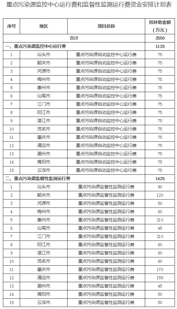 6.重點污染源監(jiān)控中心運行費和監(jiān)督性監(jiān)測運行費資金安排計劃表