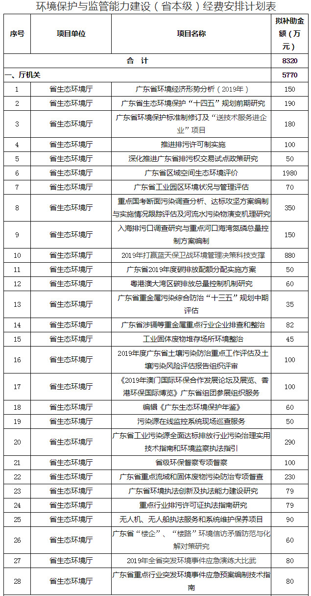 近日,廣東省生態(tài)環(huán)境廳發(fā)布了廣東省生態(tài)環(huán)境廳辦公室關(guān)于2019年打好污染防治攻堅戰(zhàn)專項資金安排計劃的公示,全文如下: