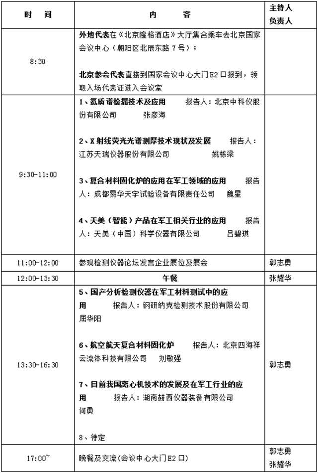 (參加人員:軍工企業(yè)代表、試驗(yàn)與檢測(cè)儀器論壇發(fā)言企業(yè)代表)