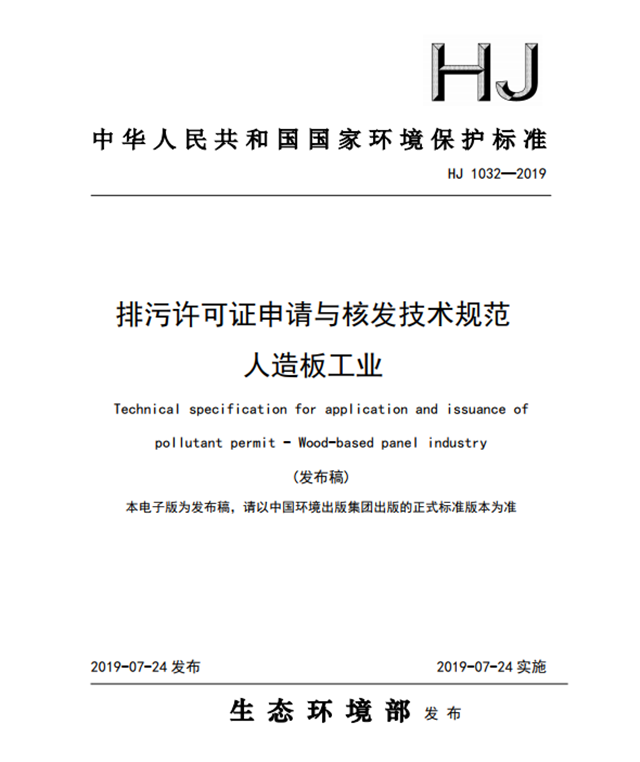 《排污許可證申請(qǐng)與核發(fā)技術(shù)規(guī)范 人造板工業(yè)》(HJ1032-2019)(原文可見附件)