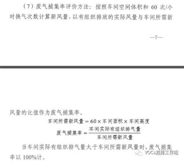 再者,各地的環(huán)保政策文件有對(duì)各行業(yè)的廢氣收集效率有硬性要求,一般都不低于70%,大多數(shù)在80-90%之間,關(guān)于收集效率的計(jì)算,目前暫未找到統(tǒng)一的計(jì)算規(guī)則,以監(jiān)管單位對(duì)直接對(duì)某種收集方式直接認(rèn)定的居多,一些地方性的文件也出臺(tái)過計(jì)算的規(guī)則,如下文:
