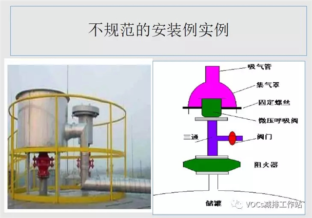 當(dāng)然,罐區(qū)管道收集需要特殊對(duì)待,罐頂大小呼吸逸散氣并不是在呼吸閥套一個(gè)密閉罩就可以解決的。