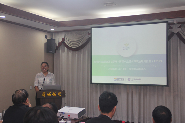 “ 2019第四屆中原經(jīng)濟區(qū)(鄭州)環(huán)保產(chǎn)業(yè)暨水環(huán)境治理博覽會“(簡稱:中原環(huán)保展)組委會代表徐培華經(jīng)理,匯報了工作進展情況。