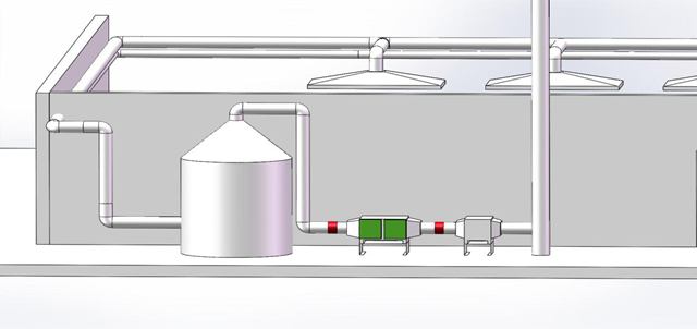 針對這種工況,草木綠設計的凈化方案是,淬火爐、回火爐廢氣在收集后,經(jīng)噴淋塔洗滌,再通過草木綠自主研發(fā)設計的雙極靜電式油霧凈化器進行集中過濾,最后經(jīng)煙囪達標排放。考慮到熱處理工序產(chǎn)生的廢氣帶有火苗,所以,草木綠設計加裝了防火罩、防火閥等防火措施。廢氣先經(jīng)噴淋塔洗滌,也能起到防火作用。