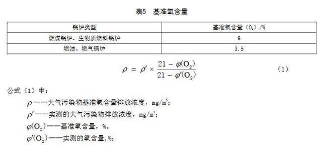 5.2大氣污染物基準氧含量排放濃度折算方法實測的鍋爐顆粒物、二氧化硫、氮氧化物、一氧化碳、汞及其化合物的排放濃度,應執(zhí)行GB5468或GB/T16157規(guī)定,按公式(1)折算為基準氧含量排放濃度。各類燃燒設備的基準氧含量按表5的規(guī)定執(zhí)行。
