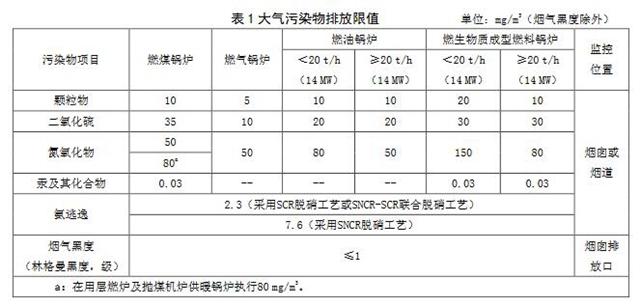 4.1.1新建鍋爐自本標(biāo)準(zhǔn)實(shí)施之日起執(zhí)行表1規(guī)定的大氣污染物排放限值。