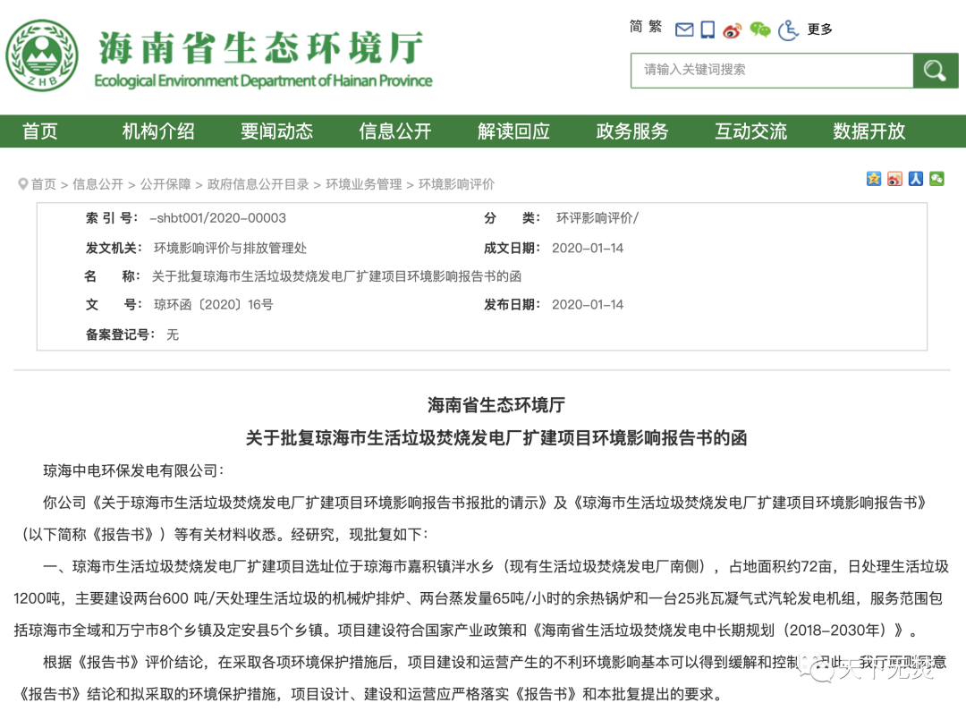 海南省???、瓊海生活垃圾焚燒廠擴建項目,在歷經(jīng)生態(tài)環(huán)境部撤銷環(huán)評批復、重做環(huán)評和重新審批之后,受影響的當?shù)匦^(qū)業(yè)主和農(nóng)村居民,于3月中旬再次向生態(tài)環(huán)境部申請行政復議。