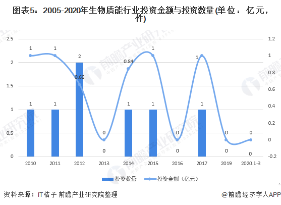 從生物質(zhì)能行業(yè)的投資規(guī)模來看,2017年投資規(guī)模1億元,2019年全年生物質(zhì)能行業(yè)的投資金額為0億元,2020年1-3月中旬新能源行業(yè)的投資金額達到0億元。