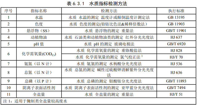 6.3.1 水質(zhì)指標(biāo)檢測(cè)方法采用表 6.3.1 所列的方法標(biāo)準(zhǔn)。其他檢測(cè)方法如適用性滿足要求可采用。