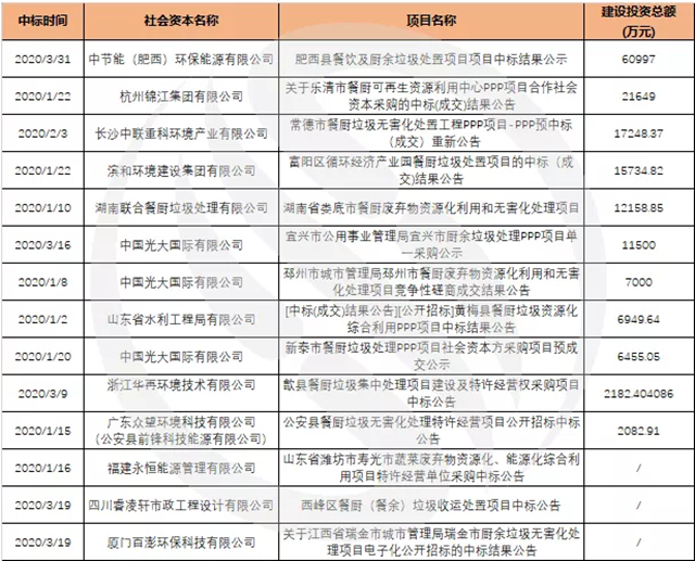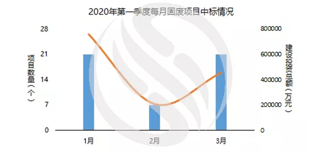 2020的四分之一已過,E20研究院數(shù)據(jù)中心對(duì)第一季度固廢市場(chǎng)進(jìn)行盤點(diǎn):(1)從E標(biāo)通獲悉,2020年第一季度社會(huì)資本共計(jì)中標(biāo)49個(gè)固廢投資運(yùn)營(yíng)項(xiàng)目,投資總額超142億元。(2)1-3月固廢項(xiàng)目中標(biāo)趨勢(shì)呈現(xiàn)出“√”型曲線,2月部分項(xiàng)目受疫情影響導(dǎo)致延期或停滯,中標(biāo)項(xiàng)目數(shù)量?jī)H個(gè)位數(shù),3月隨著疫情得到有效控制出現(xiàn)回升態(tài)勢(shì)。(3)焚燒市場(chǎng)釋放投資額超106億元,與2019年同期相比,投資額同比上漲15.4%,項(xiàng)目數(shù)量與日處理能力較同期持平;焚燒市場(chǎng)依舊延續(xù)歷史趨勢(shì),向四五線城市下沉。民企社會(huì)資本中康恒環(huán)境表現(xiàn)不俗,共計(jì)中標(biāo)6個(gè)項(xiàng)目。(4)第一季度,(含)餐廚/廚余處理處置項(xiàng)目共計(jì)成交16個(gè),8成項(xiàng)目落定長(zhǎng)江經(jīng)濟(jì)帶地區(qū)。(5)建筑垃圾處置市場(chǎng)同樣值得關(guān)注,一季度數(shù)據(jù)中心從E標(biāo)通獲悉建筑垃圾處置項(xiàng)目8個(gè),75%的項(xiàng)目中標(biāo)地為華東地區(qū)。(6)除上述細(xì)分領(lǐng)域外,生物質(zhì)發(fā)電、畜禽糞污等其他細(xì)分領(lǐng)域文中均有涉及,詳見正文。