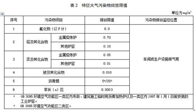 有組織排放:關于常規(guī)的大氣污染物排放,《排放標準》要求顆粒物排放濃度≤20mg/m3,二氧化硫排放濃度≤80mg/m3,氮氧化物排放濃度≤180mg/m3,煙氣黑度不得超過林格曼黑度1級。特征大氣污染物排放限值如下表,污染物排放監(jiān)控的位置均要在車間或生產(chǎn)設施排氣筒處。