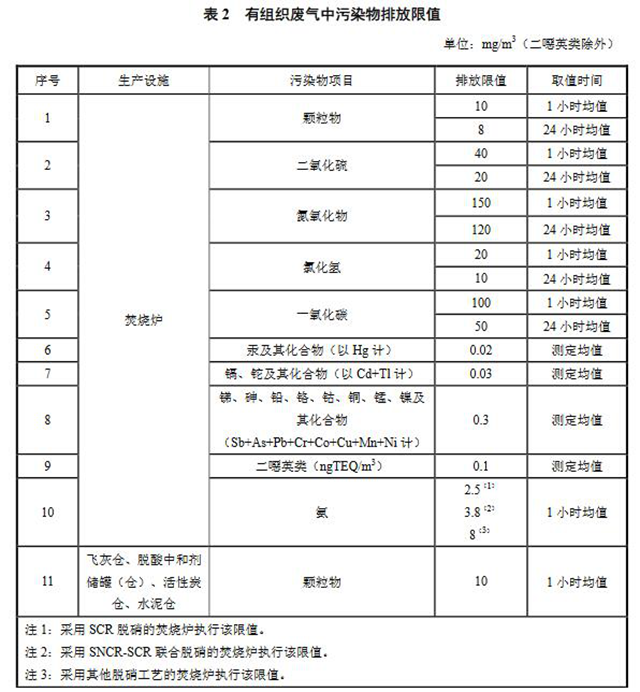 《控制標準》對垃圾焚燒煙氣污染物排放做了具體規(guī)定。要求自2023年1月1日起,現(xiàn)有生活垃圾焚燒廠有組織廢氣執(zhí)行污染物排放限值,新建生活垃圾焚燒廠則在標準實施之日起執(zhí)行,具體如下: