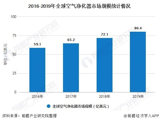 2、2019年全球空氣凈化器市場規(guī)模超80億美元