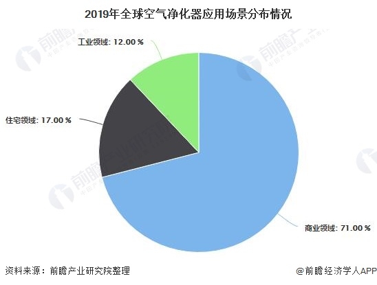 根據(jù)應用場景不同,空氣凈化器市場分為商業(yè),住宅和工業(yè)。由于辦公空間和教育機構的需求增加,商業(yè)應用細分市場在2019年占據(jù)了71.0%的主導市場份額。