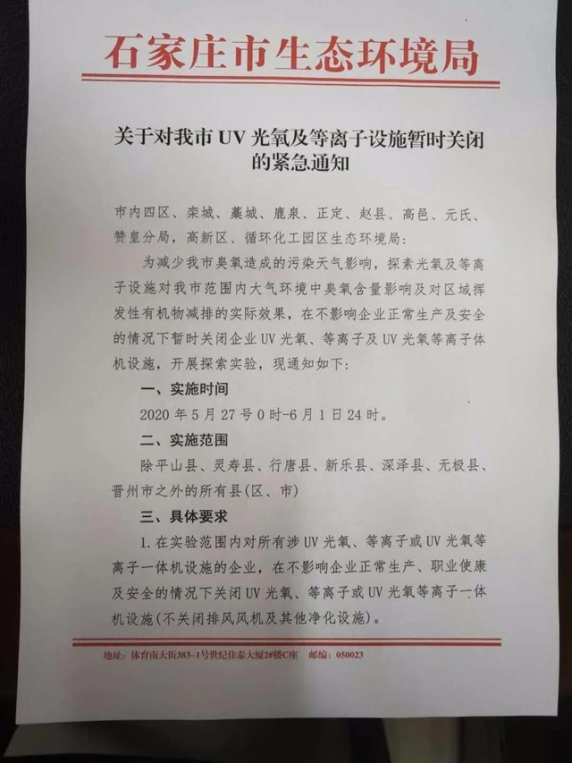 京津冀地區(qū),以河北為例,河北以石家莊為例,前幾日石家莊生態(tài)環(huán)境局發(fā)布一則震撼VOCs治理行業(yè)圈的通知。主要內(nèi)容為:為探索光氧及等離子VOCs治理設(shè)施對(duì)石家莊大氣環(huán)境中臭氧含量影響就對(duì)應(yīng)區(qū)域VOCs減排實(shí)際效果,在不影響企業(yè)正常生產(chǎn)及安全的情況下暫時(shí)關(guān)閉企業(yè)UV光氧、等離子及UV光氧等離子體機(jī)設(shè)施(但不關(guān)閉排風(fēng)風(fēng)機(jī)及其它凈化措施),開(kāi)展探索實(shí)驗(yàn)。實(shí)施時(shí)間為:5月27日0時(shí)到6月1日24時(shí)!
