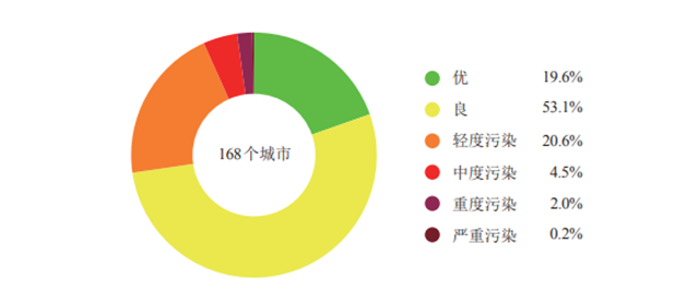 2019年168個(gè)城市環(huán)境空氣質(zhì)量各級別天數(shù)比例