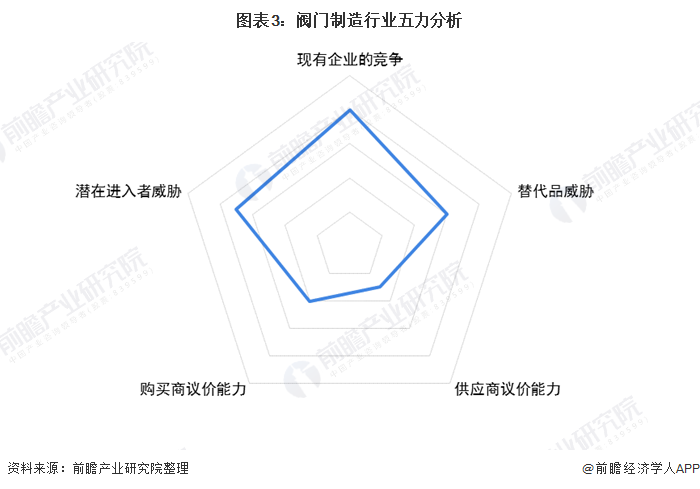 我國閥門制造行業(yè)對(duì)于上游原材料行業(yè)行業(yè)的議價(jià)能力較弱,國內(nèi)大量中低端產(chǎn)品處于價(jià)格競爭階段,行業(yè)對(duì)下游行業(yè)的議價(jià)能力較弱;隨著外資的不斷進(jìn)入,其在品牌和技術(shù)方面均占優(yōu)勢,外資的進(jìn)入將給國內(nèi)企業(yè)帶來巨大的威脅和壓力;閥門是通用機(jī)械的一種,通用機(jī)械產(chǎn)品的特性是通用性強(qiáng)、結(jié)構(gòu)較為簡單、操作方便,但高新技術(shù)產(chǎn)品具有機(jī)電一體化、高效、節(jié)能、耐腐蝕等特性,一般產(chǎn)品結(jié)構(gòu)簡單,易于模仿制造,會(huì)造成低水平重復(fù)建設(shè)及市場無序競爭,存在一定的替代品威脅。