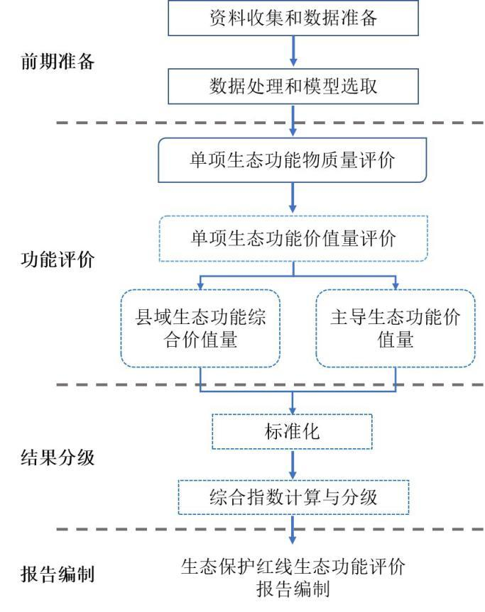 生態(tài)保護紅線生態(tài)功能評價的技術(shù)流程見圖 1。